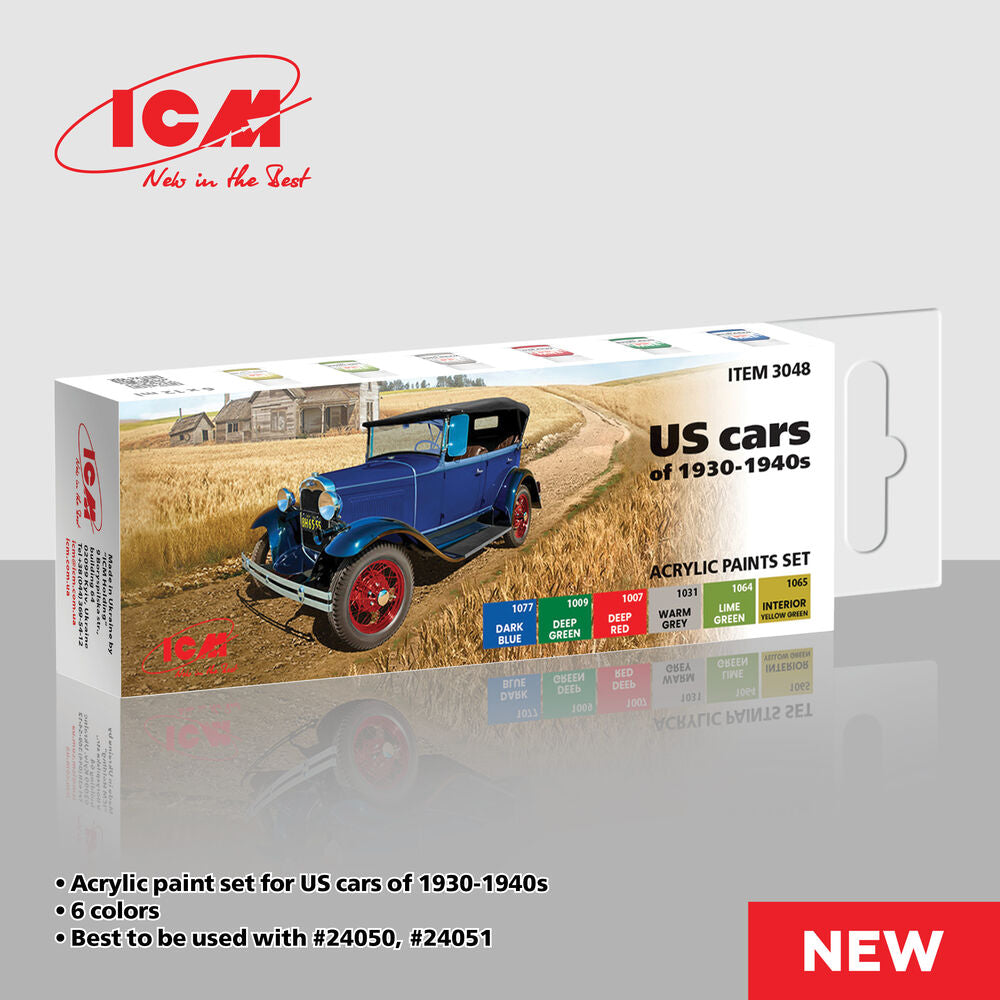 Acrylic paint set for US cars of 1930-1940s 6 x 12 ml