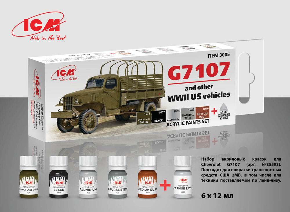 Acrylic paint set for US WWII vehicles (G7107) 6 x12 ml