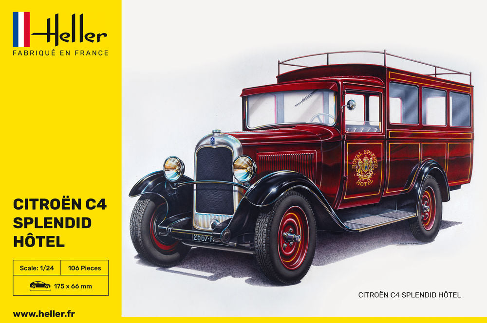 Designed using a new technique at the time and inspired by American manufacturing processes, the C4 was an exceptionally sturdy vehicle. Heller���s model depicts the type of vehicles commonly used in the 20s and 30s by high-end establishment to carry their wealthy clients between the train station and the hotel.
