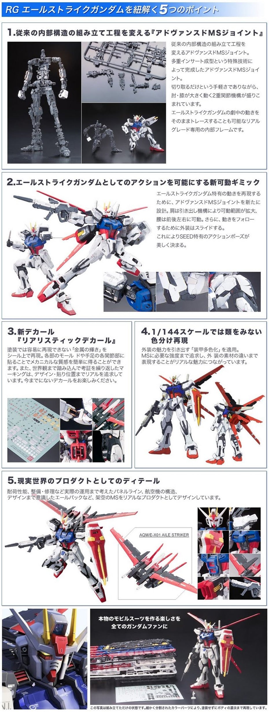 aile strike gundam er endnu et fedt kit fra bandai samt en af deres første RG gundams, hvilket betyder den har en fuld MS frame some resten af modellen er bygget op over, den er lidt back heavy så jeg vil tilråde en stander til den, og hvis man vil have det maksimale ud af den er sky grasper et idielt companion sæt da den kommer med delen til både launcher strike og sword strike til denne gundam