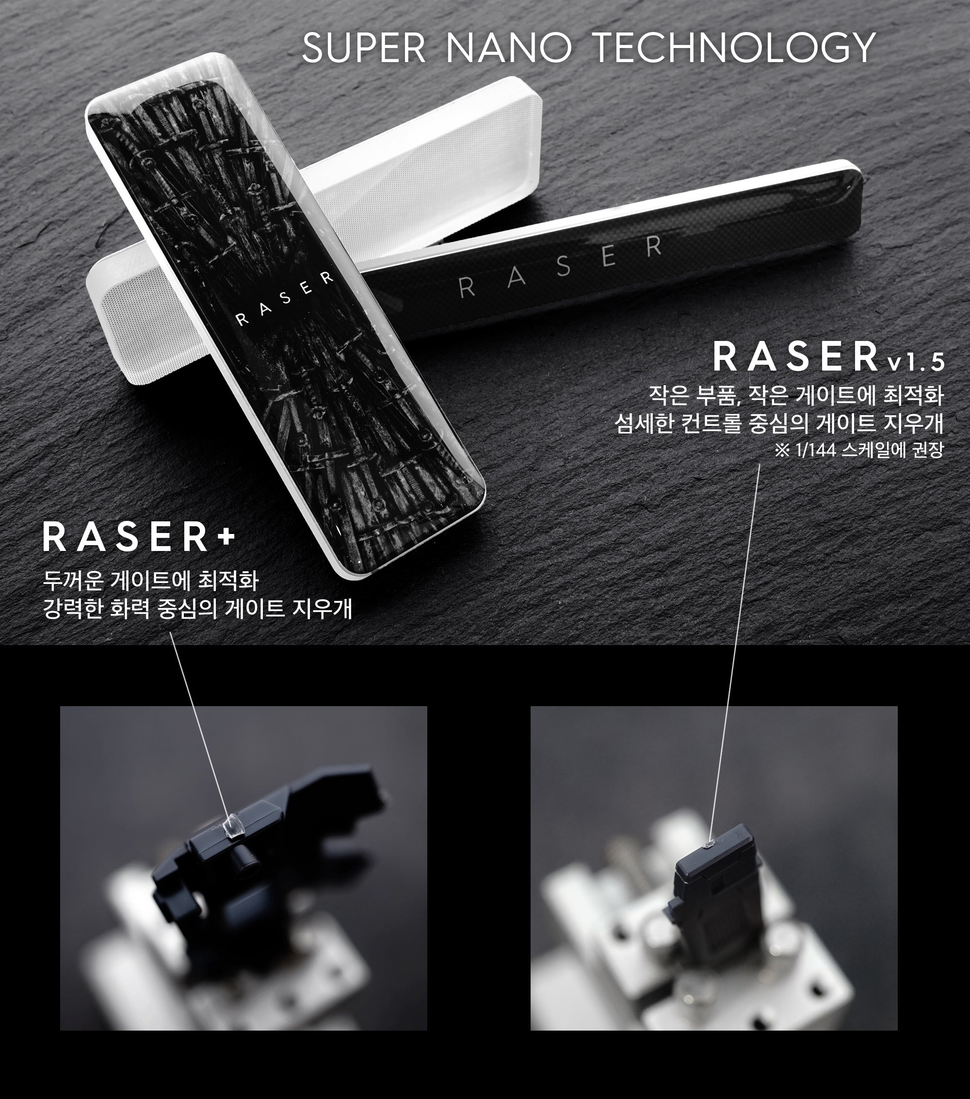 The name RASER is derived from combining the two words GATE + ERASER. It's a new concept of sanding tools that leaves no scratches when removing gate-marks.