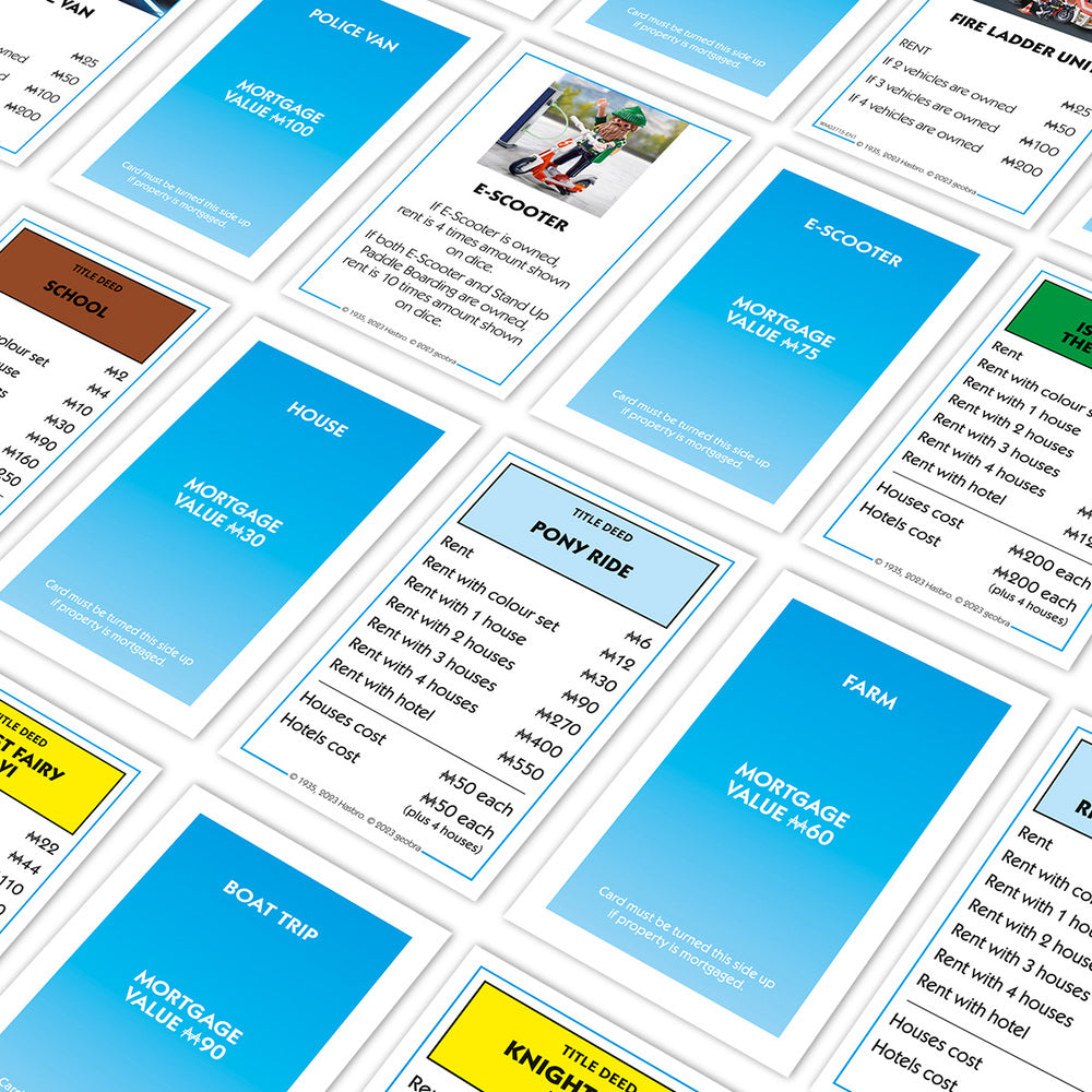 BUILD YOUR PLAYMOBIL EMPIRE: Buy up colour sets and use your custom Monopoly money to expand your empire by building houses and hotels